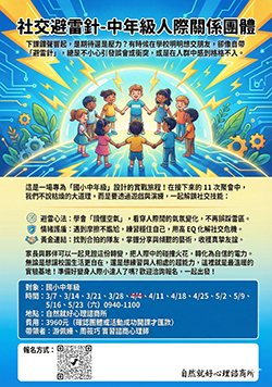 自然就好心理諮商、多元主題講座、兒童/青少年團體課程、自我探索成長團體、心理專業成長培訓課程